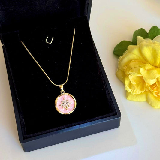İNDİRİM 16%Pembe Mor Taş Oval Kolye